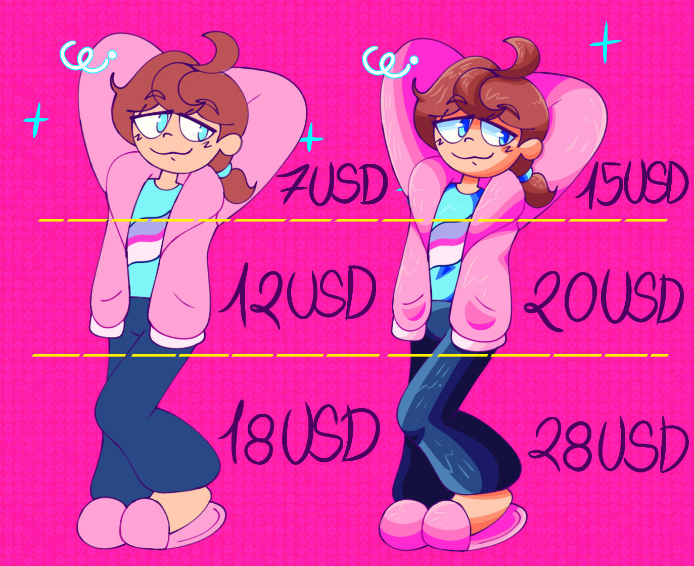 • You are not allowed to: trace, copy, edit, re-sell, claim my art as your own, use my art for NFTs/Generative AI.• Commissions will take about 2~5 days to complete depending on complexity.